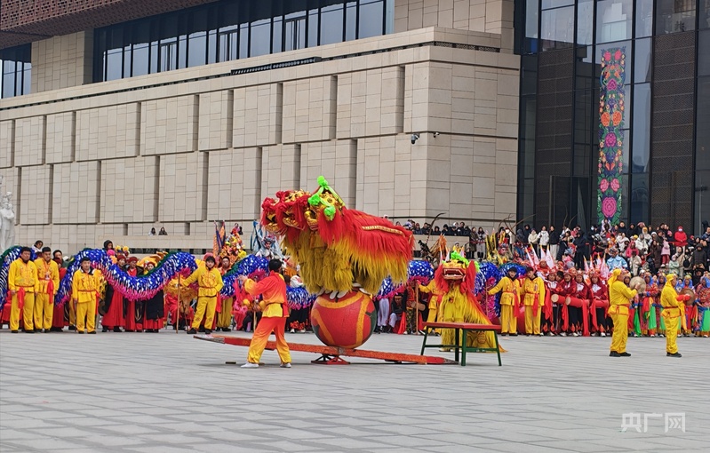 随后,北京舞狮在锣鼓声中闪转腾挪,时而威风凛凛,时而憨态可掬,高难度的踩球动作赢得阵阵掌声;河北曲周龙灯凌空飞舞,两条彩龙围绕明珠灵动追逐,鳞甲在阳光下流光溢彩;麒麟舞表演在闪、转、腾、挪间威武生风、气吞长虹。值得一提的是,此前中国非物质文化遗产馆面向社会公开招募并经过培训的麒麟舞学员也登台献艺,与专业团队共同演绎精彩。此外,横山老腰鼓的粗犷豪放、上党八音会的文武相济、重庆中敖火龙的吉庆满堂、蚌埠花鼓灯的轻盈明快,共同构成一幅多姿多彩的民俗画卷,令现场观众大饱眼福。