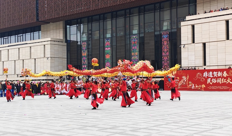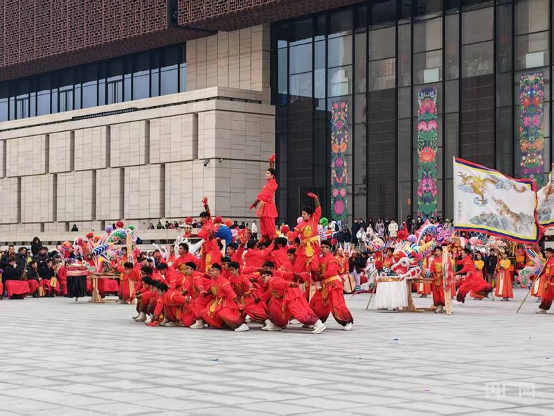 央广网北京3月1日消息(记者 宋雪)共舞锦绣山河,同贺盛世安康。2月28日、3月1日,中国非物质文化遗产馆和中国共产党历史展览馆联合举办“非遗贺新春 民俗闹红火”系列活动。活动汇聚了来自北京、陕西、山西、浙江、内蒙古等8个省(区、市)的民俗展演团队,近600名表演人员,为广大观众呈现麒麟舞、寿阳高跷竹马戏、蒙古族马头琴音乐、龙舞(浦江板凳龙)等14项民俗展演项目。